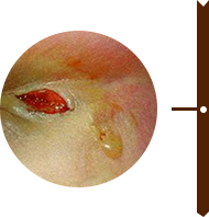 瘘管破溃后,脓液流出,色黄、血腥味、量